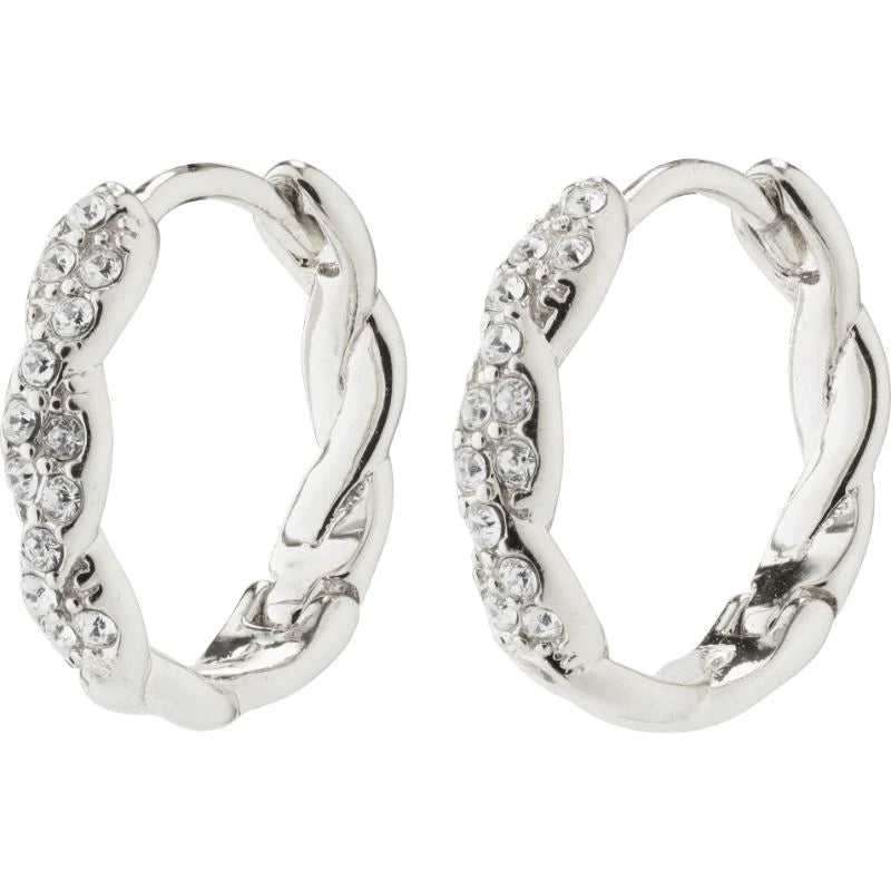 PILGRIM EZO TWIRLED CRYSTAL HOOPS - SILVER PLATED