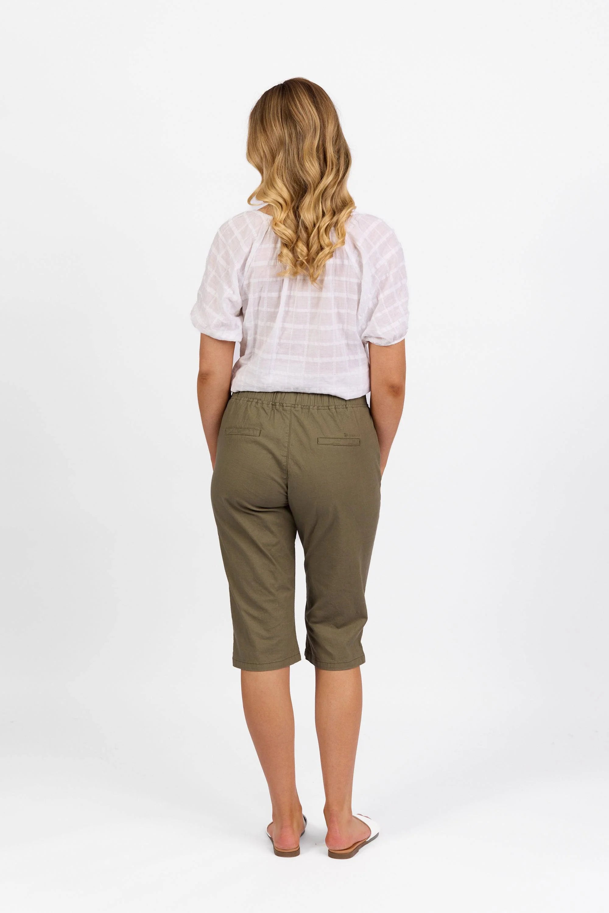 VASSALLI 7/8 LENGTH SLIM LEG ELASTIC SHORT WITH CONTRAST TRIM