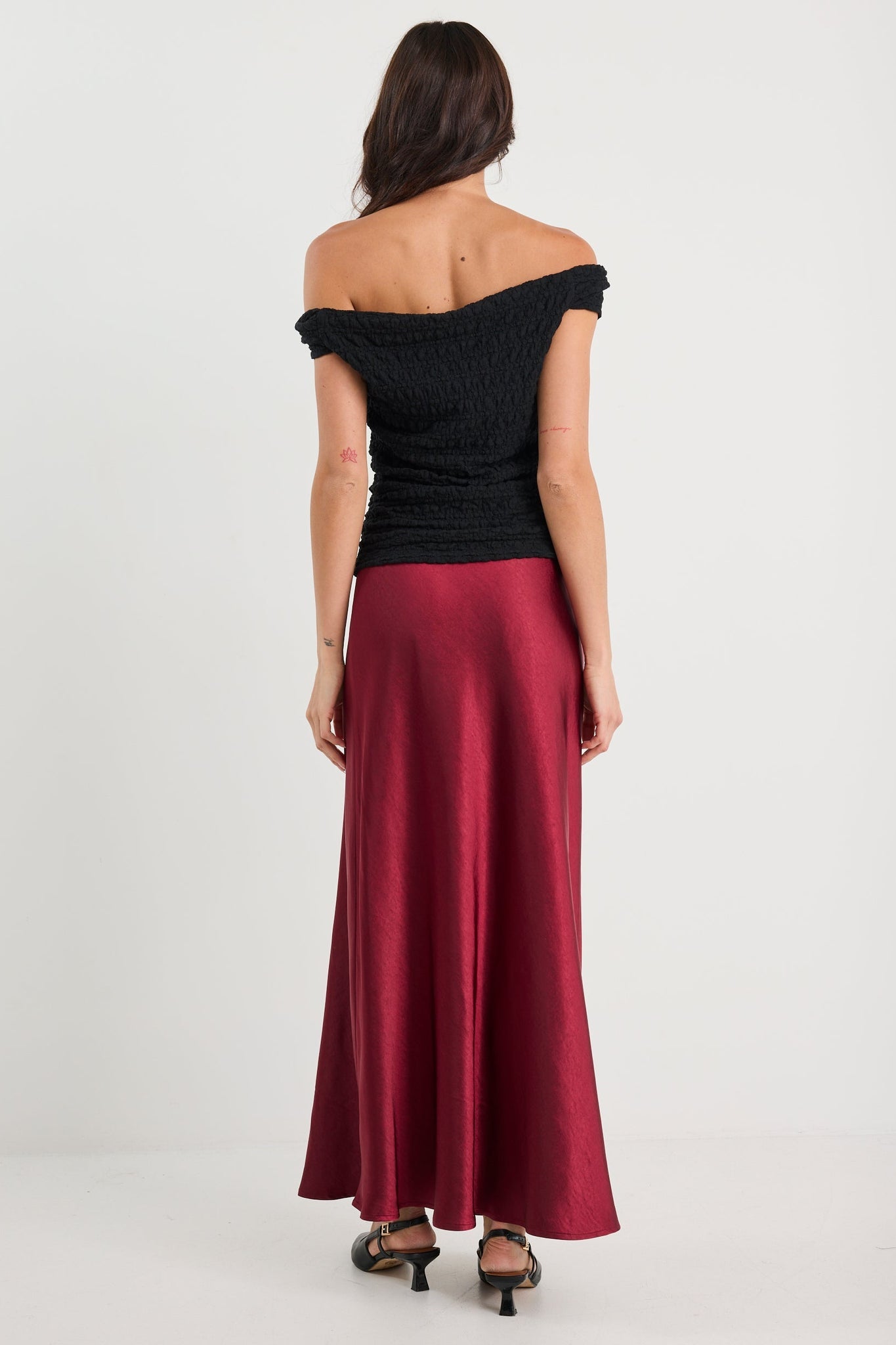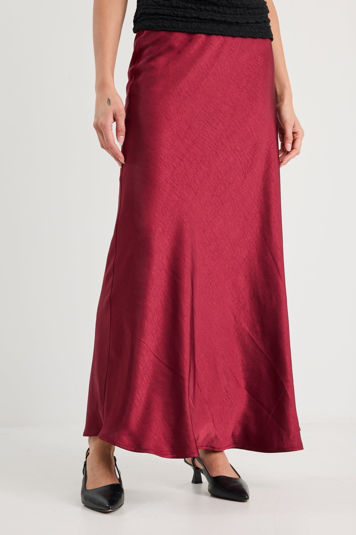 BY ROSA PRESERVE FLOATY SATIN BIAS MIDI SKIRT
