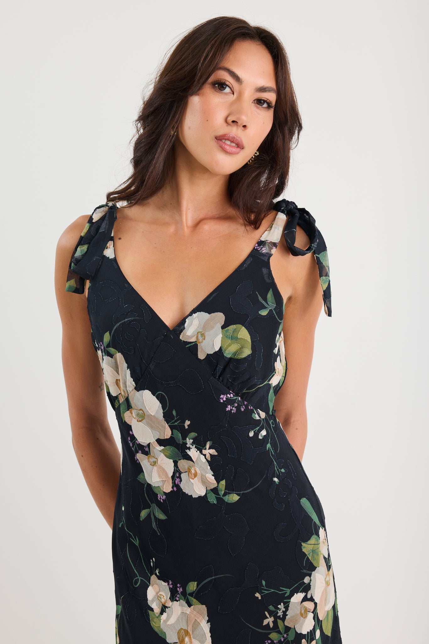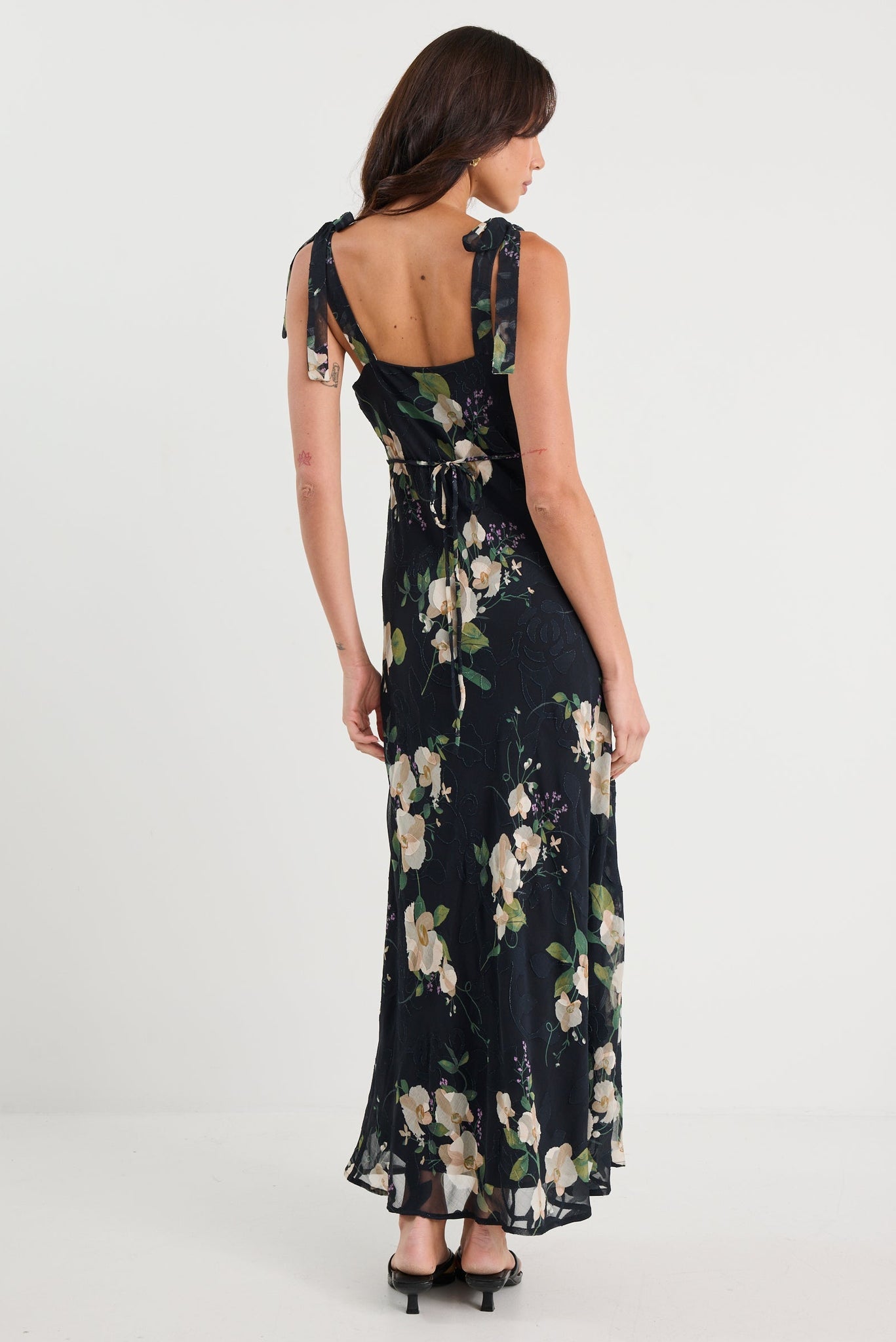 BY ROSA SERENADE FLORRAL TIE STRAPS SLIP MAXI DRESS